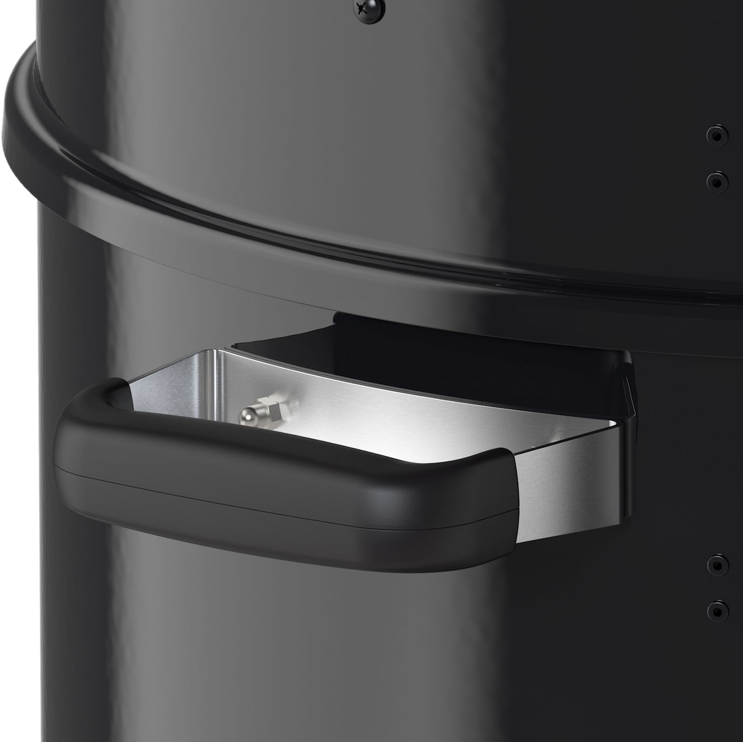 • Große 7 Liter Wasserschale zwischen Glut und Garraum dient als Hitzespeicher, sorgt für stabile Temperaturen und fängt herabtropfendes Fett auf