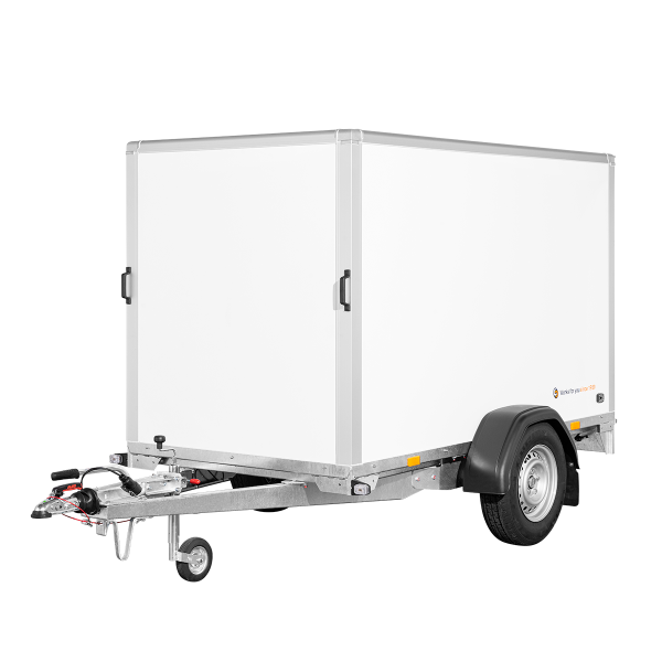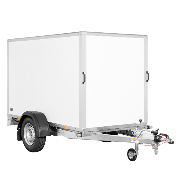 Mit seinen durchdachten Abmessungen bietet der Kofferanhänger ein großzügiges Ladevolumen, ohne dabei unhandlich zu wirken. Die zulässige Gesamtmasse von 1.350 kg ermöglicht den sicheren Transport unterschiedlichster Güter – von Werkzeugen und Maschinen bis hin zu Freizeit- oder Messeausstattung. Die ausgewogene Gewichtsverteilung sorgt für ein stabiles Fahrverhalten, auch bei längeren Strecken.