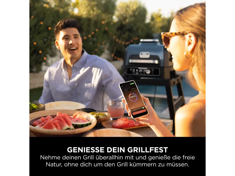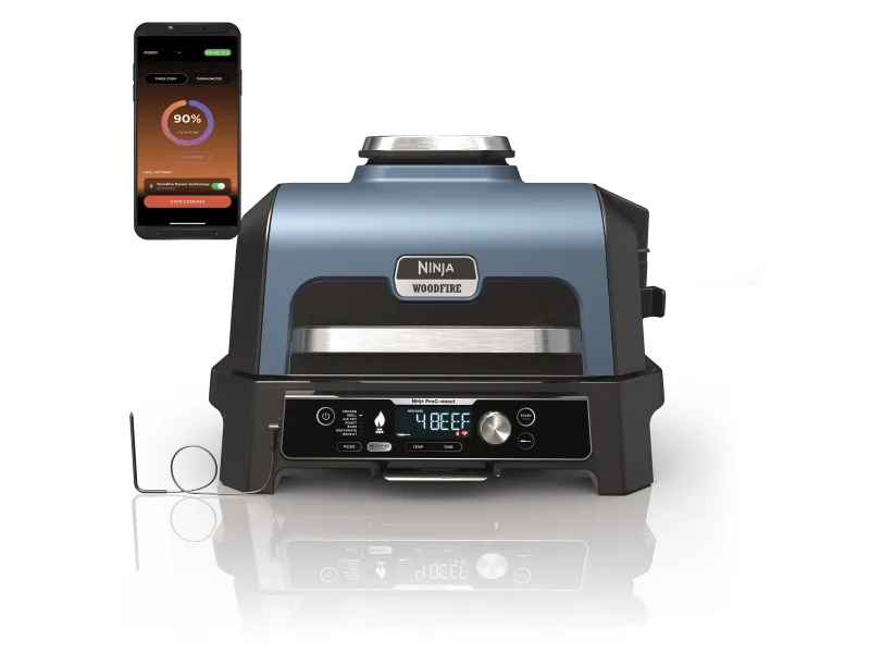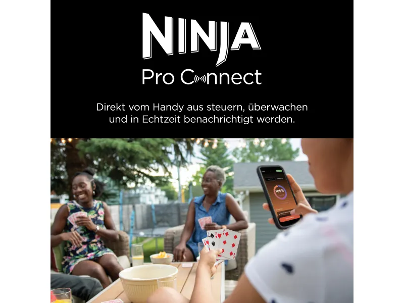 Mit dem Ninja Woodfire Pro Connect XL Elektrischen Grill & Smoker kannst du dein Grillgut und den Garvorgang direkt von deinem Handy aus steuern, mit Echtzeitüberwachung, Kochkontrolle und Benachrichtigungen, sodass du andere Dinge tun kannst, während dein Essen perfekt gart.