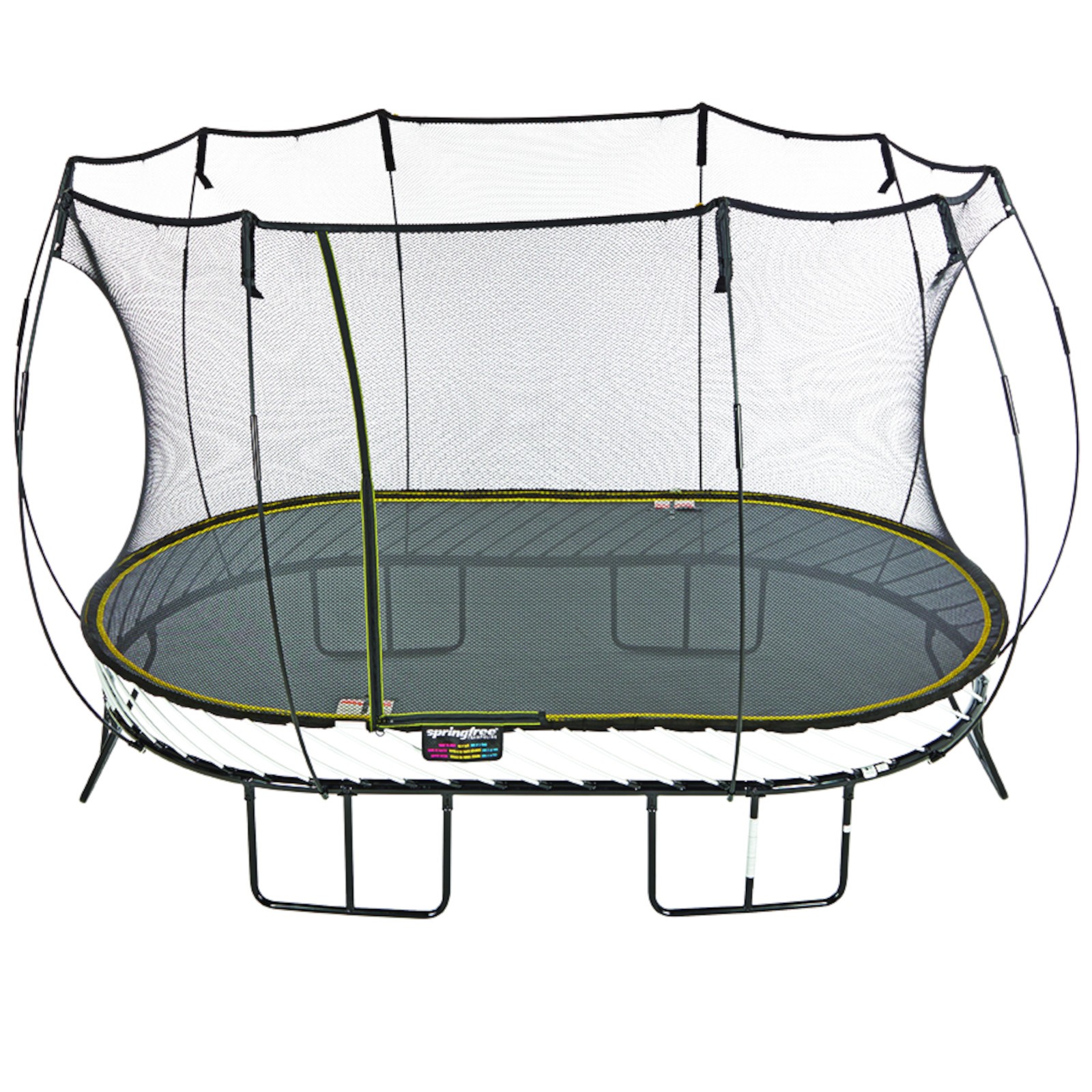 Springfree-Trampoline bieten maximale Sicherheit, für ein gutes Sprungerlebnis. Mit dem federlosen Design sind beim Springfree-Trampolin die Aufprallbereiche beseitigt worden. Damit ist die Gefahr, die 90 % der produktbezogenen Trampoline verursachen, hierbei beseitigt worden. Mit dem abgesenkten Rahmen, welcher sich unter der Sprungfläche befindet, hat Springfree das Verletzungsrisiko ebenfalls minimiert. Die Sprungmatte verfügt über SoftEdge, also über weiche Kanten, welche bei einem Sturz eine 30x bessere Dämpfleistung bieten. Auch das Sicherheitsnetz, welches aus flexiblen Stützen besteht, bietet Ihnen einen hohen Schutz. Alles in allem bietet das Springfree-Trampolin also mehr Schutz als die herkömmlichen Trampoline.