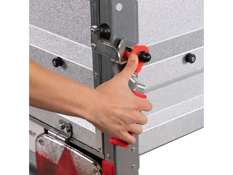 Das im Lieferumfang enthaltene Stützrad erhöht nicht nur die Beweglichkeit des PKW-Anhängers, sondern verhindert außerdem das Kippen des Anhängers. Während Ihrer Pausen schützt die mitgelieferte Diebstahlsicherung den Anhänger vor Fremdzugriffen. Die Rückwandklappe wird durch die Stema-Sicherheitsverschlüsse vor dem versehentlichen Aufspringen geschützt. Die großdimensionierten Multifunktionsrückleuchten inklusive Nebelschlussleuchte werden über den 7-poligen Stecker an den Strom angeschlossen.