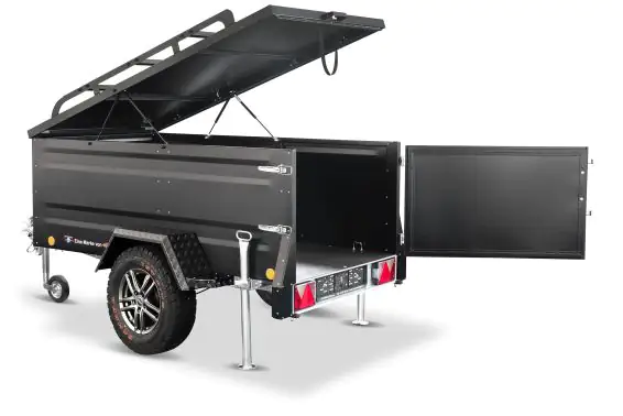 Seien Sie der Erste, der eine Bewertung abgibt “TPV Kofferanhänger KT EB2 Offroad schwarz pulverbeschichtet gebremst 1000 kg mit Radstoßdämpfern”