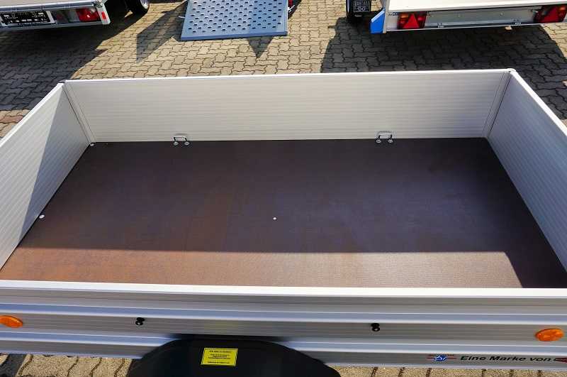 Die Aluminium-Bordwände sind stabil profiliert und bieten eine hohe Verwindungssteifigkeit. Gleichzeitig reduzieren sie das Eigengewicht des Anhängers, was sich direkt positiv auf die Nutzlast auswirkt. Mehr Zuladung bei gleichem Gesamtgewicht bedeutet mehr Effizienz und Flexibilität im täglichen Einsatz.