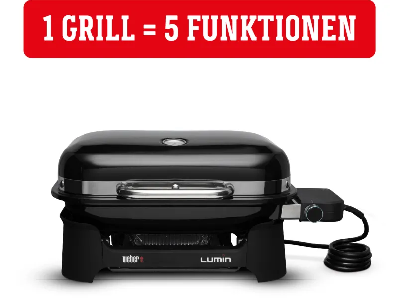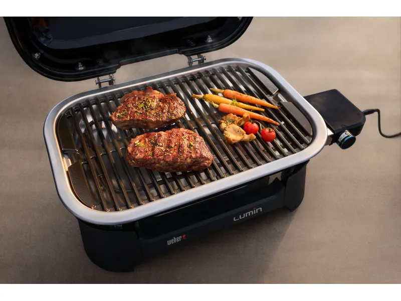 Dieser multifunktionale Elektrogrill erreicht Temperaturen von über 315 °C für ausgezeichnetes Anbraten, während die Rauchzufuhr das gewünschte Grillaroma noch weiter verstärkt. Ideal zum Anbraten, Räuchern, Dämpfen oder Kochen mit verschiedenen Gareinstellungen, außerdem hält er zudem die Speisen warm, sodass sich alle jederzeit selbst bedienen können Auch das Grillen von tiefgekühltem Grillgut ist möglich, indem es während des Vorheizens aufgetaut wird. Der neue Lumin Elektrogrill Weber ist modern, praktisch und so konzipiert, dass er alle Ihre Wünsche nach einem guten Geschmack erfüllt und sich zugleich gut in Ihren Außenbereich einfügt.