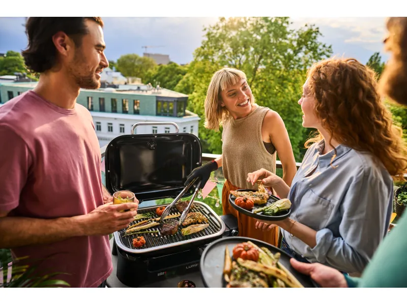 Der Lumin Schwarz 2200 W eignet sich ideal für Balkon, Terrasse oder Indoor-Grillen. Elektrische Energie ersetzt die offene Flamme und ermöglicht flexibles Grillen.