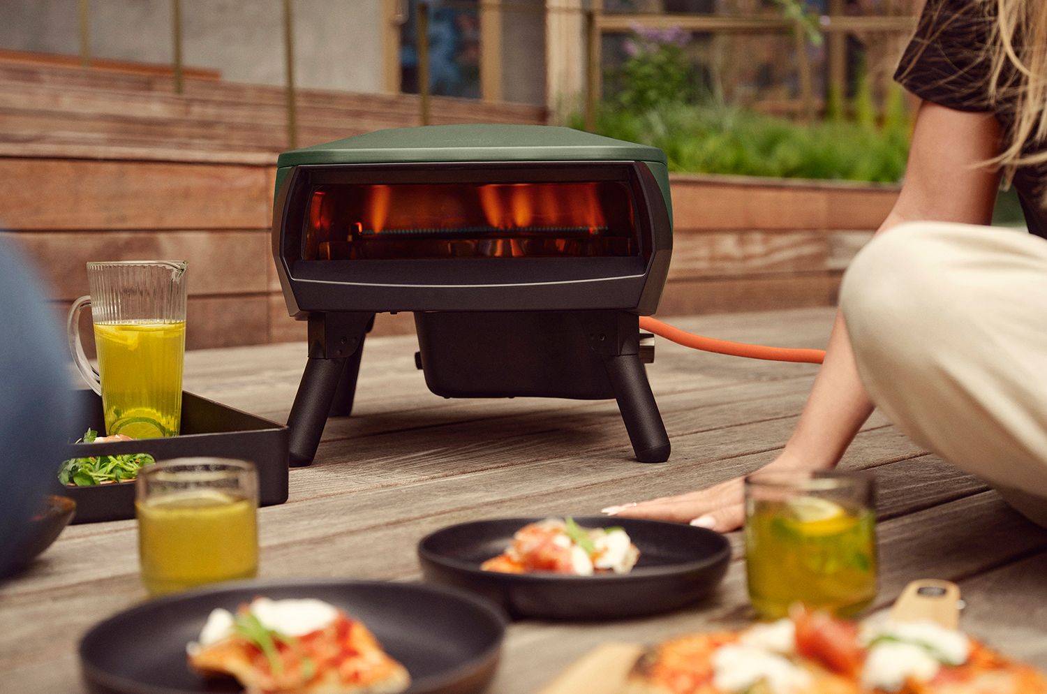 - kompakter Gas Pizzaofen – in einem edlen Design mit mattgrüner Pulverbeschichtung
