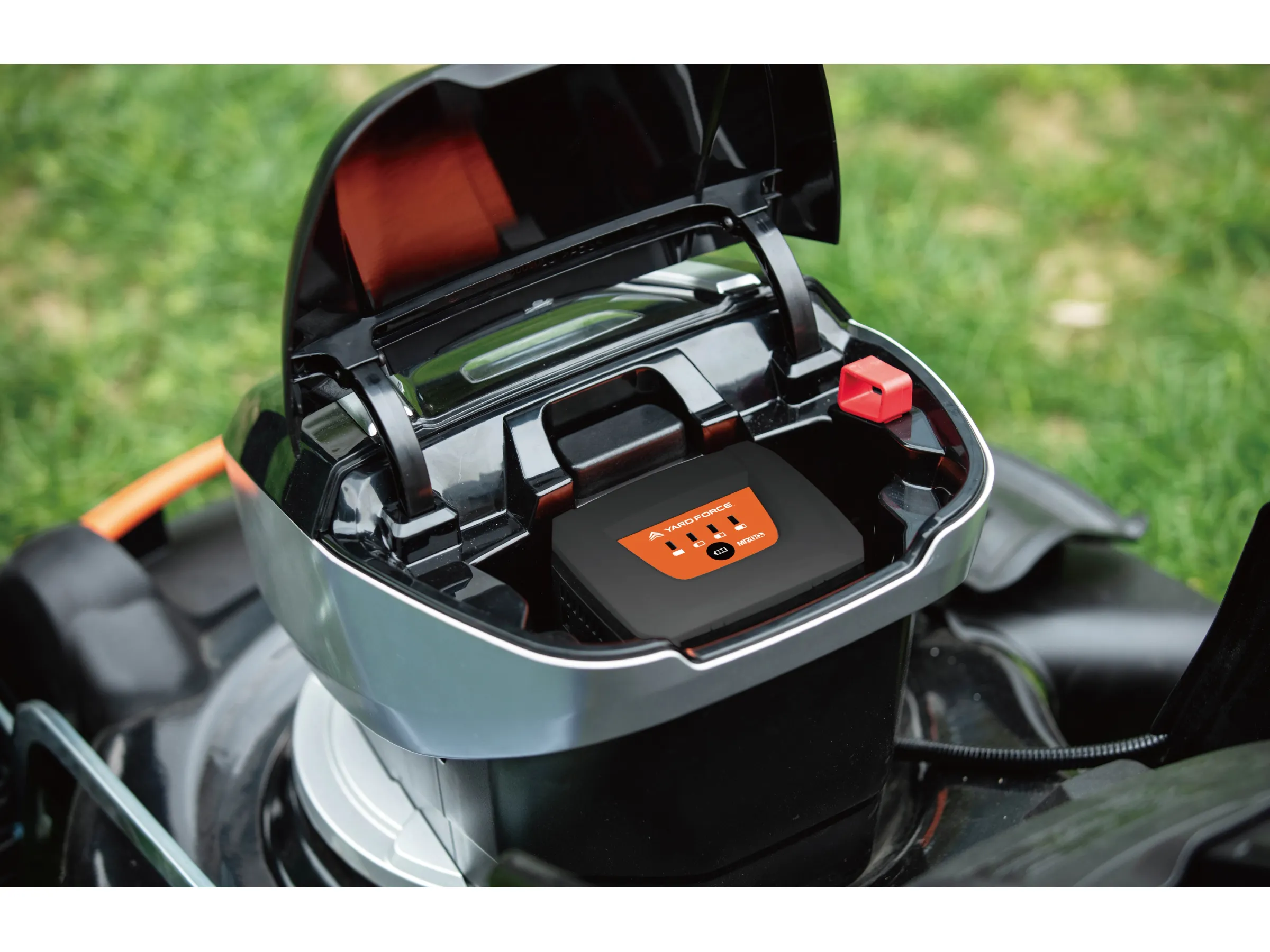 Der Rasenmäher wird mit dem mitgelieferten 60 V Lithium-Ionen-Akku betrieben. Der Akku ist Teil der Yard Force 60 V Range und mit allen Geräten aus dieser Reihe kompatibel. Durch die moderne Lithium-Ionen-Technologie ist der Akku nicht anfällig für den Memory-Effekt und lässt sich dank des enthaltenen Schnellladegerätes innerhalb von nur 60 Minuten wieder voll aufladen.